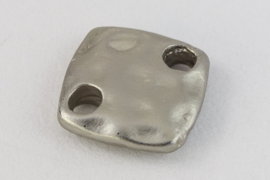 9mm flat square with 2mm holes at diagonal corners. 1.8mm thick with hammered texture.