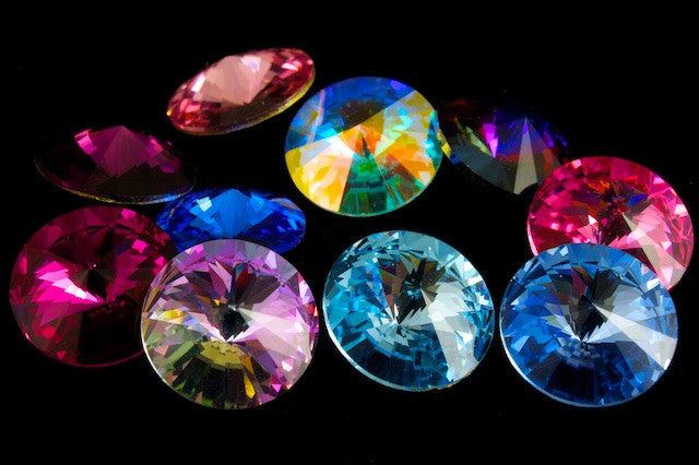 Swarovski article 1122 rivoli.Brilliantly faceted round fancy stone with point on front and back.Light Rose with silver foil.Made in Austria.