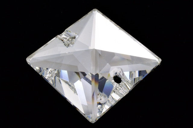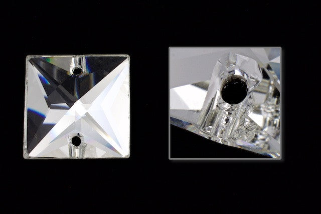 16mm crystal faceted square flat back sew-on with two holes and silver foil.