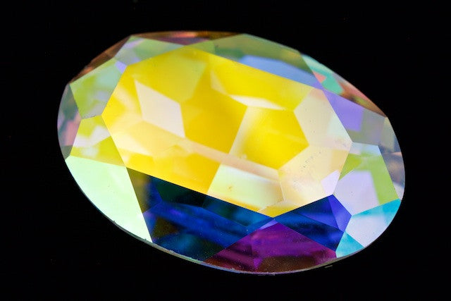 20mm x 30mm crystal faceted cabochon with iridescent coating and foiled faceted back.