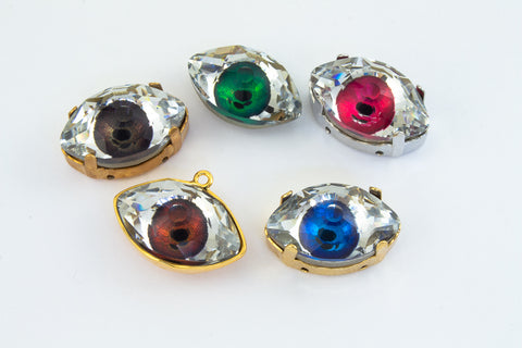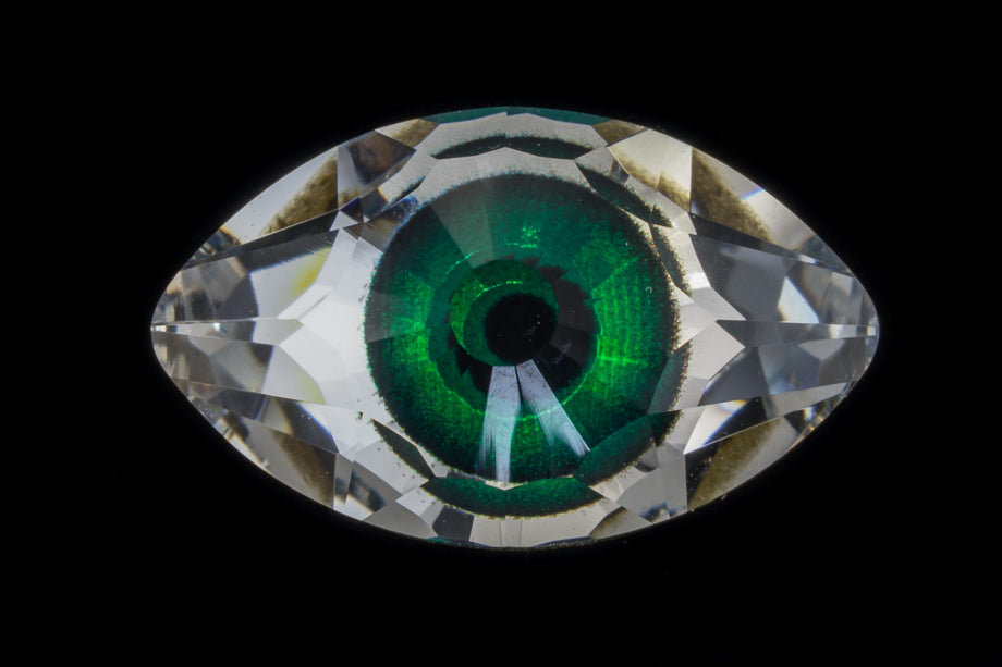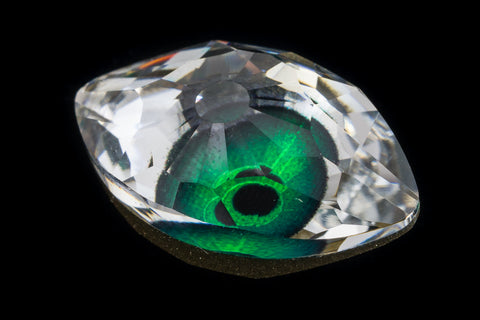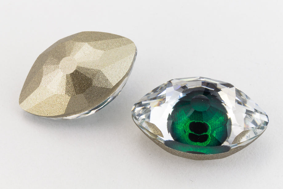 10.5mm x 18mm faceted crystal eye with green iris and foiled point back.