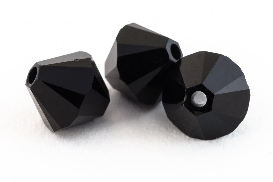 Jet black faceted bicone.
