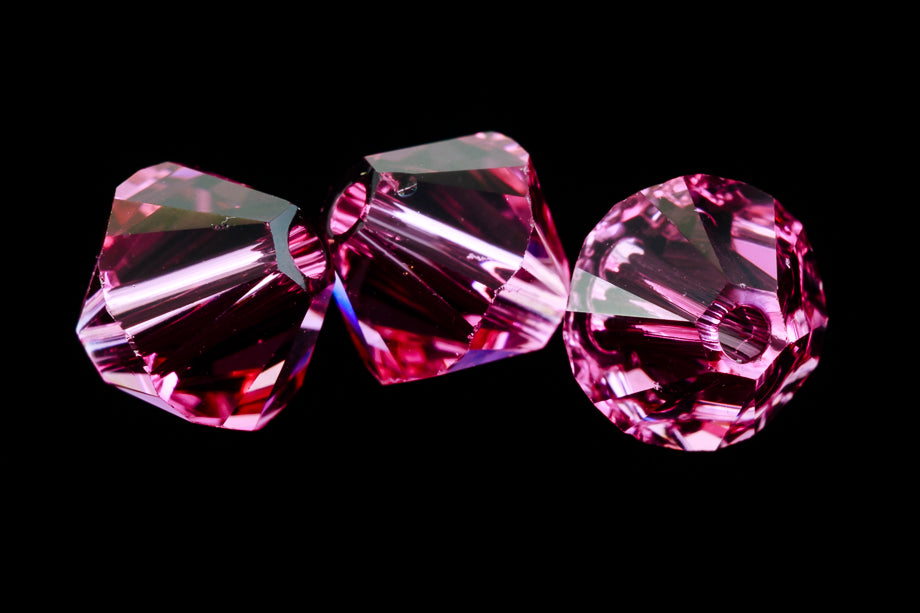 Transparent rose faceted bicone.
