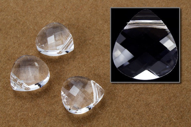 10mm x 11mm faceted flat briolette drop with top drilled hole.