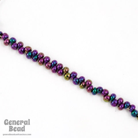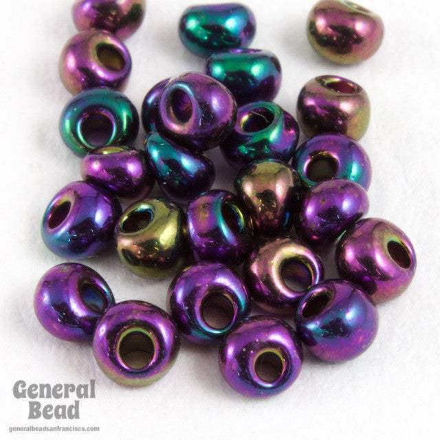 Size 8 raindrop seed bead with off center hole in metallic purple iris.