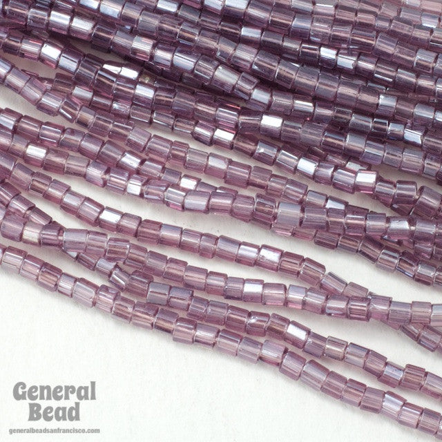 Size 11 faceted hex cut six sided seed bead in transparent luster light amethyst.