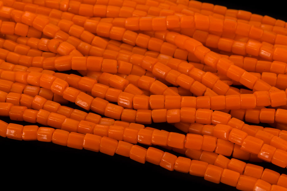 Size 11 faceted hex cut six sided seed bead in opaque orange.