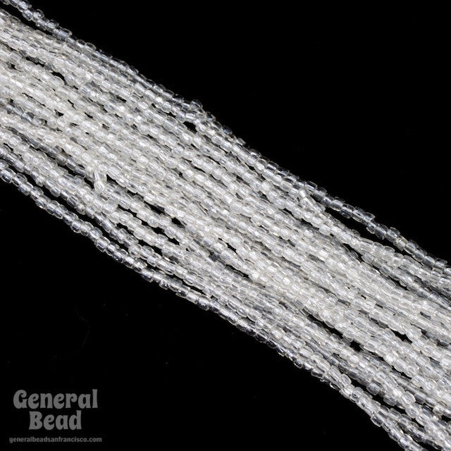 Size 12/0 (1.7mm) 3-cut glass seed bead in luster transparent crystal.