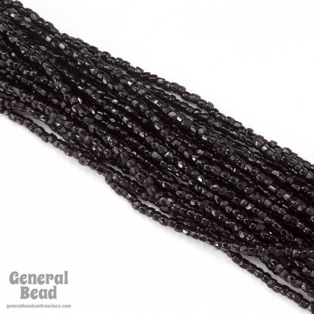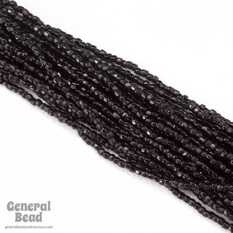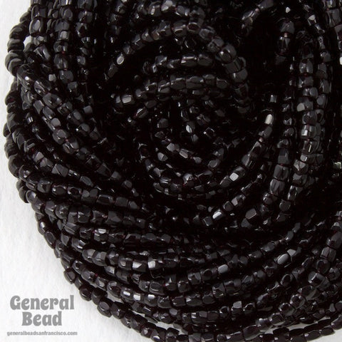 Size 12/0 (1.7mm) 3-cut glass seed bead in opaque black.