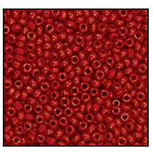 Size 11/0 Charlotte cut opaque dark red glass seed beads.