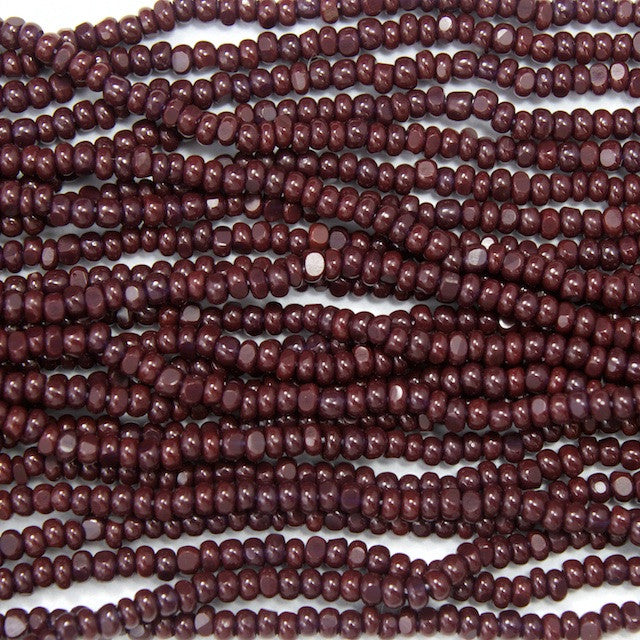 Size 13/0 Charlotte cut opaque charcoal brown glass seed beads.