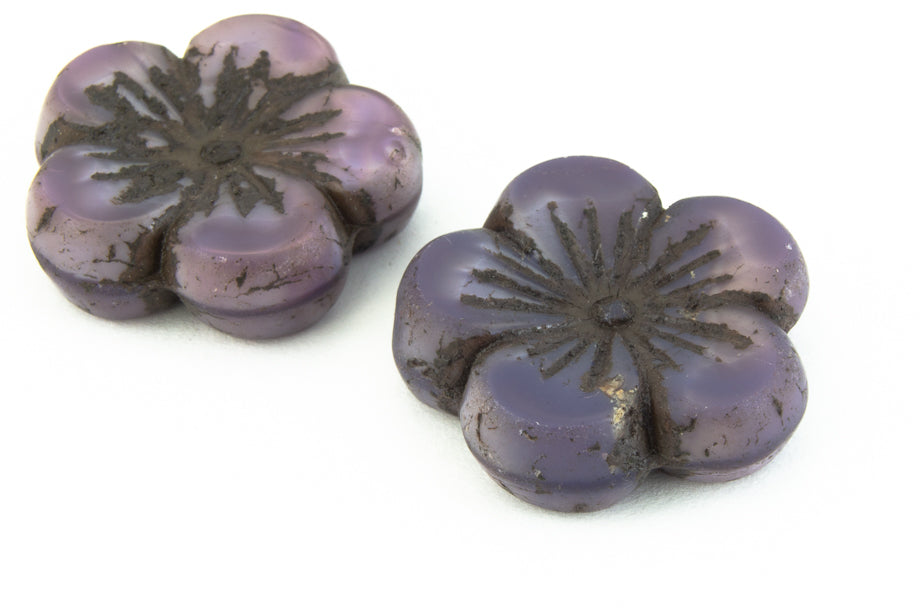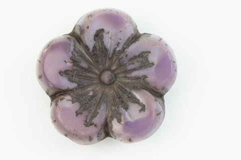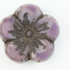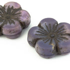 21mm opaque violet hibiscus flower shaped bead with grey finish.