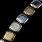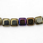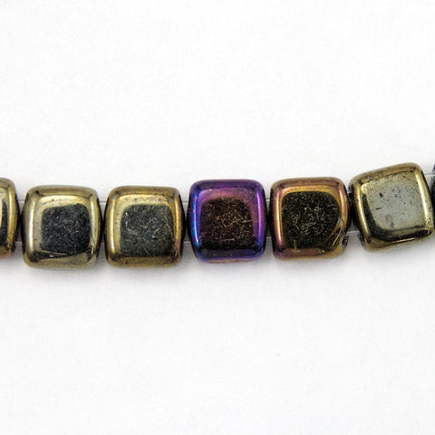 6mm brown iris flat square bead with 2 parallel holes and slightly rounded corners.