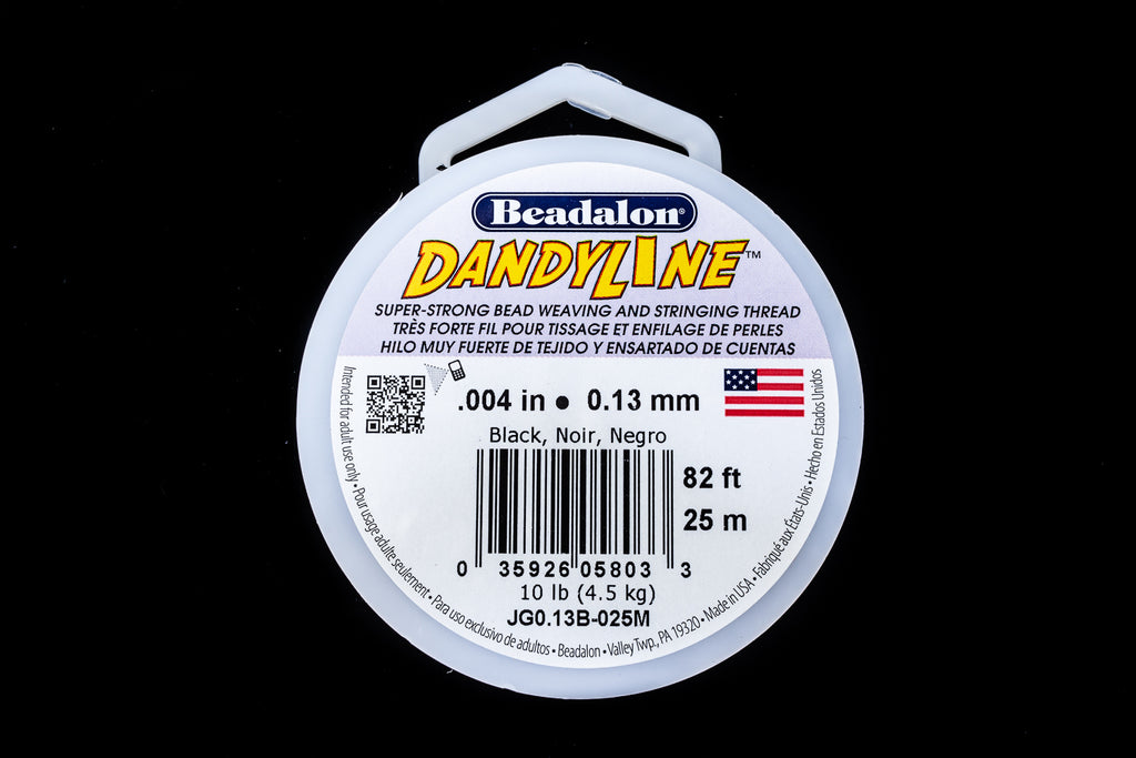 "DandyLine" black braided bead thread for bead weaving and stitching.
