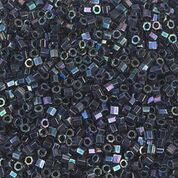 Size 10/0 metallic blue iris hex cut cylinder seed bead.