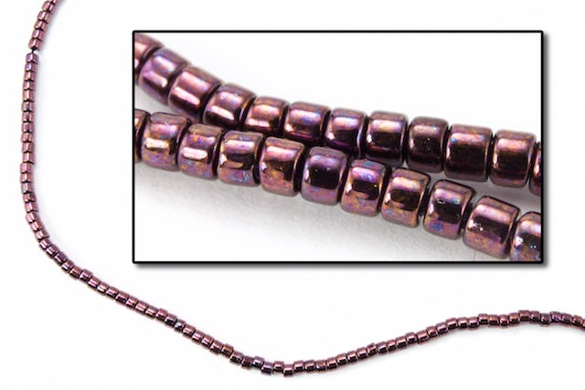 Size 10/0 metallic raspberry cylinder seed bead.