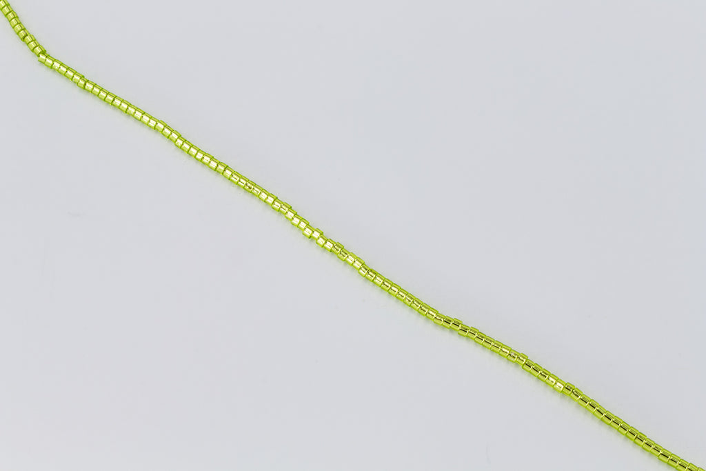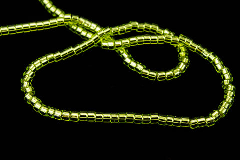 Size 10/0 silver lined light spring green cylinder seed bead.