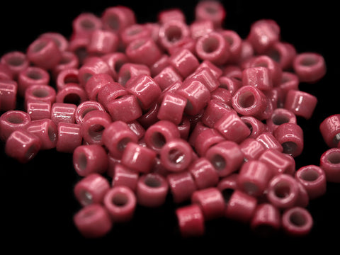Size 11/0 Duracoat opaque dyed plum berry cylinder seed bead.