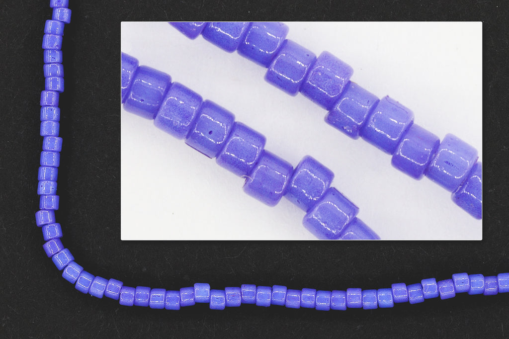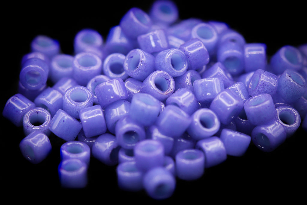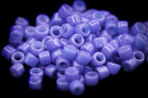 Size 11/0 Duracoat opaque dyed violet cylinder seed bead.