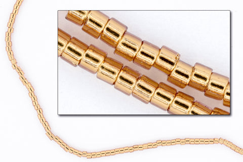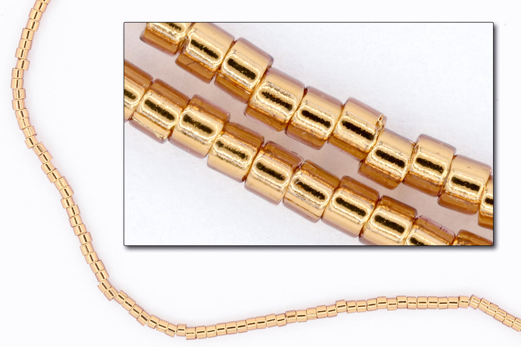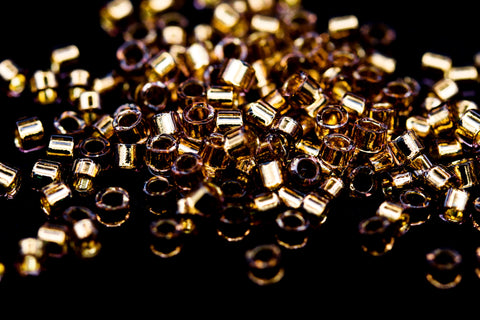 Size 11/0 24 karat gold lined pale rose cylinder seed bead.