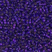 Size 10/0 silver lined dyed dark violet cylinder seed bead.