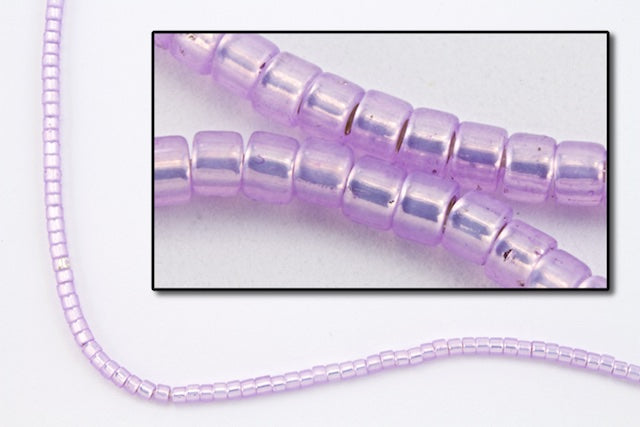 Size 10/0 silver lined dyed light lilac cylinder seed bead.