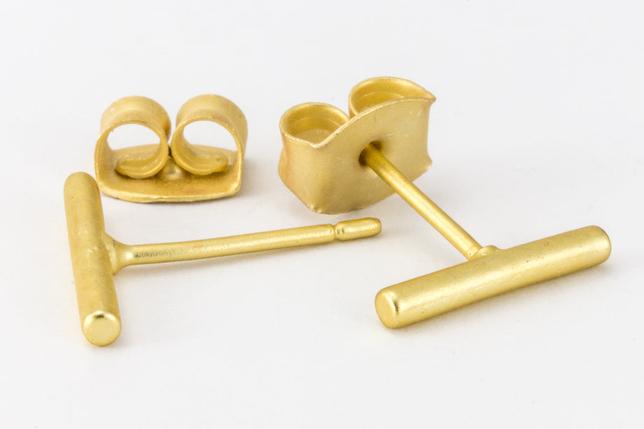 Matte gold lead and nickel free plating over lead free pewter. Earring clutch included.