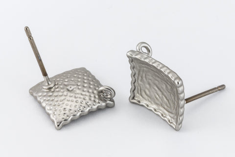 11mm concave textured square with 21 gauge surgical steel post on back and open 2mm loop.