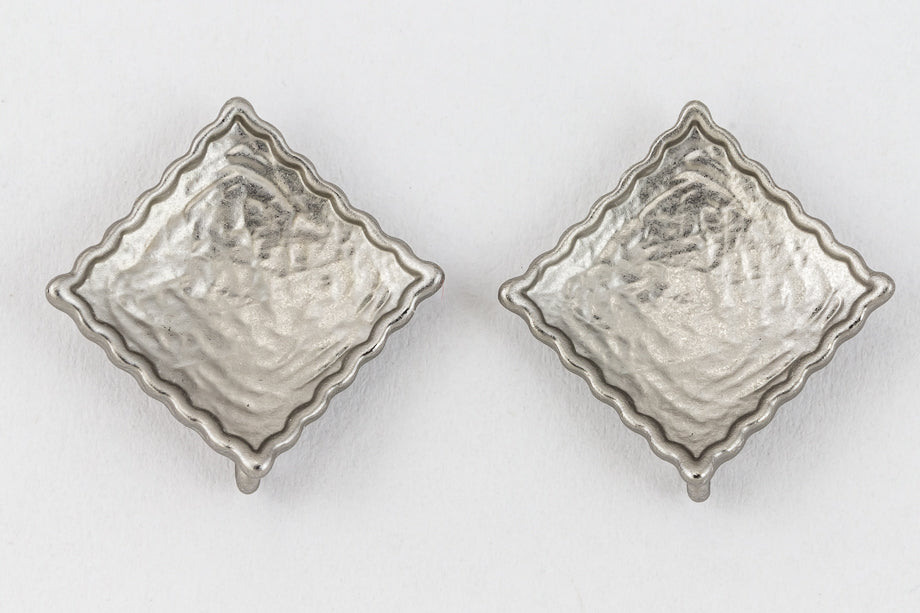 11mm Matte Silver Concave Square Ear Post with Loop #EFB124