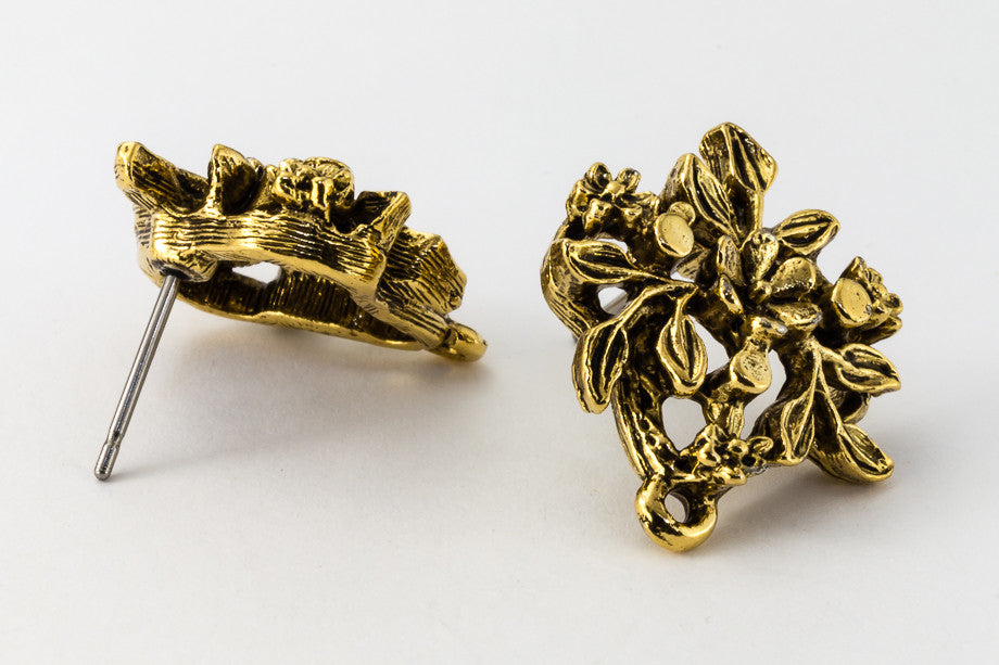 17.5mm x 20.5mm floral spray with loop at bottom and standard post on back.