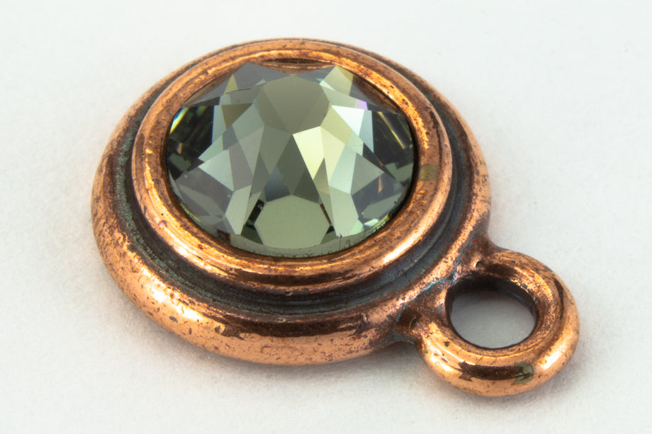 16mm x 12mm antique copper round ear post with bezel filled by 34ss black diamond flat back rhinestone. Inner diameter measures 7.2mm. 2.25mm loop.