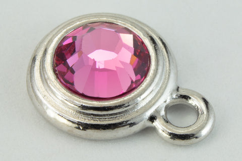 16mm x 12mm rhodium round ear post with bezel filled by 34ss rose flat back rhinestone. Inner diameter measures 7.2mm. 2.25mm loop.