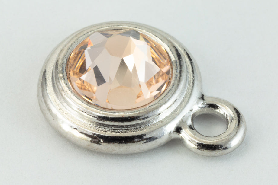 16mm x 12mm rhodium round ear post with bezel filled by 34ss Silk flat back rhinestone. Inner diameter measures 7.2mm. 2.25mm loop.