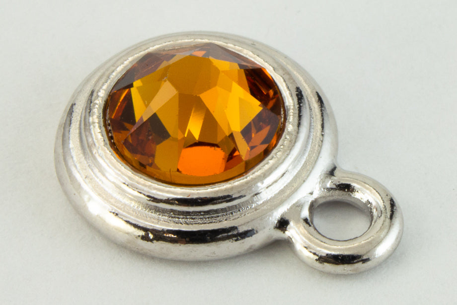 16mm x 12mm rhodium round ear post with bezel filled by 34ss topaz flat back rhinestone. Inner diameter measures 7.2mm. 2.25mm loop.