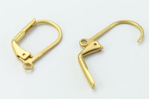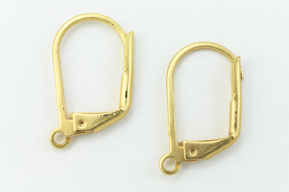 9mm x 17.5mm brass lever back style earring finding with matte gold plating.