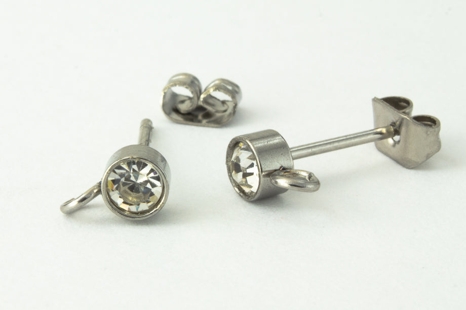 Stainless steel 4mm ear post set with faceted cubic zirconia.