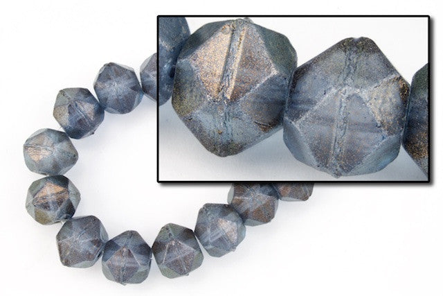 10mm transparent Montana blue "English cut" glass faceted bead with gold luster finish.