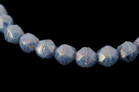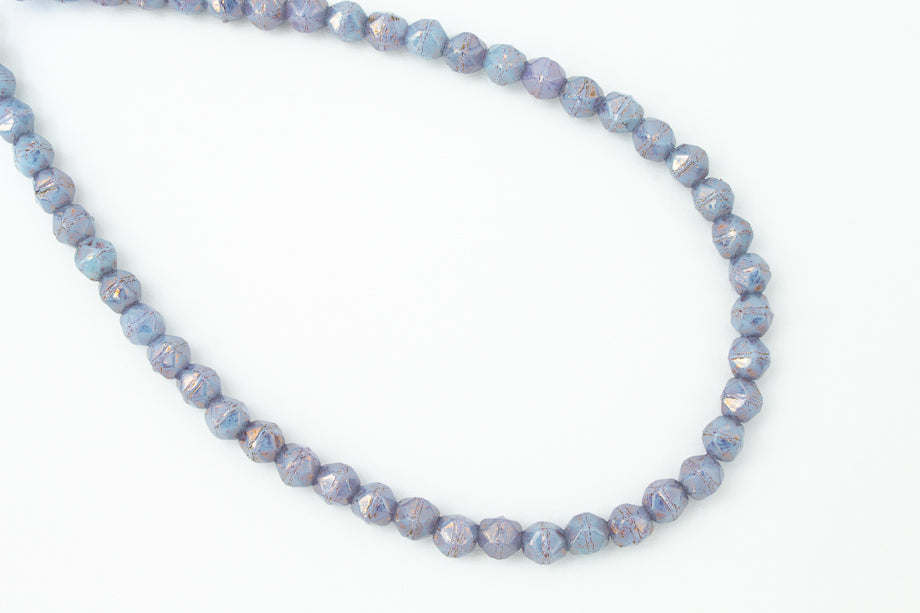 4mm opaque lavender "English cut" glass faceted bead with silver wash.