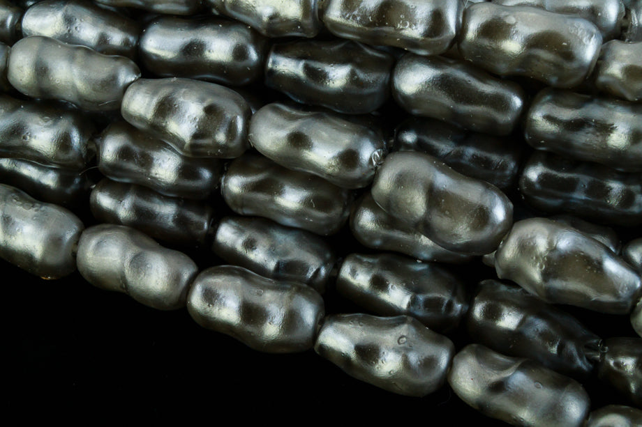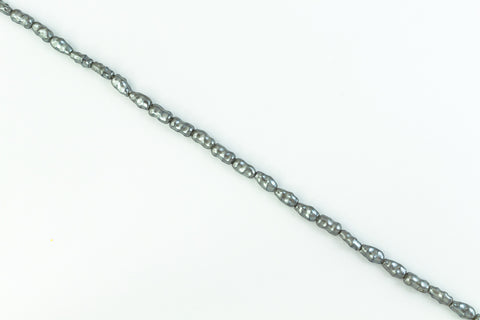 Approximately 4mm x 7mm with lengthwise hole. Molded plastic with luster finish.
