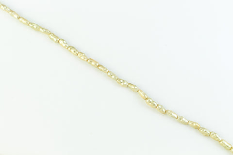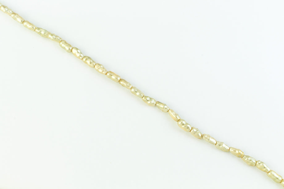 Approximately 4mm x 7mm with lengthwise hole. Molded plastic with luster finish.