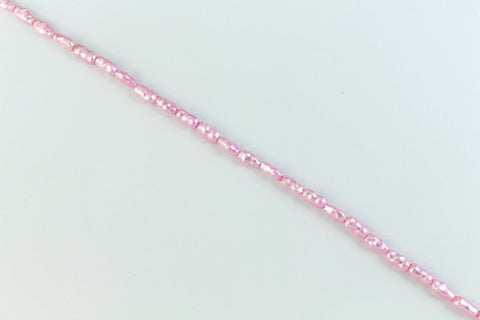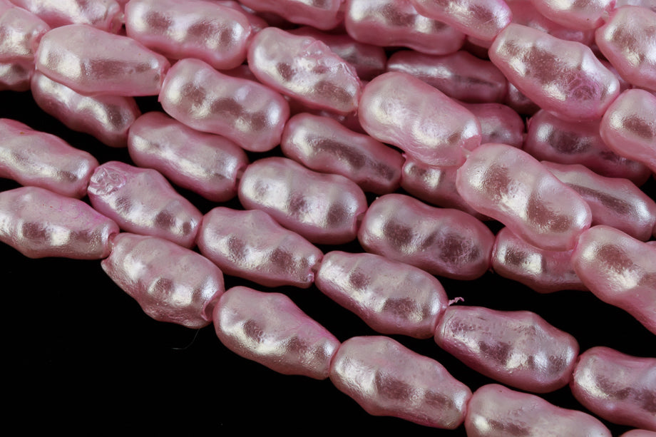 Approximately 4mm x7mm with lengthwise hole. Molded plastic with luster finish.