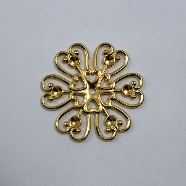 Brass Filigree with Gold Color Plating. Made in the USA in the 2010's.