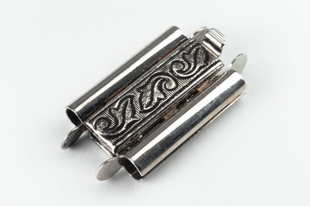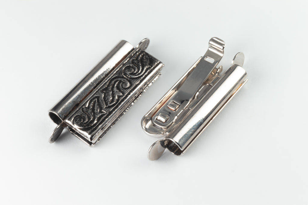 10mm x 24mm slide lock clasp with curving leaf detail.