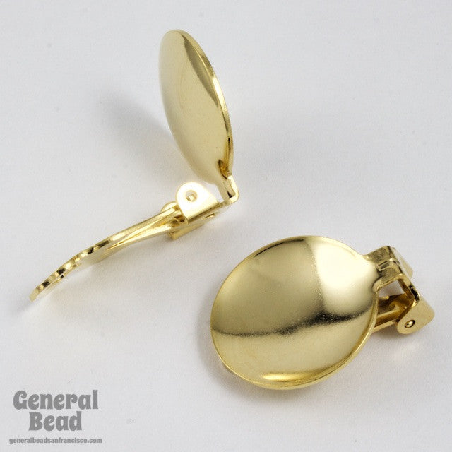 15mm dapped brass clip-on earring finding with gold tone metal plating.