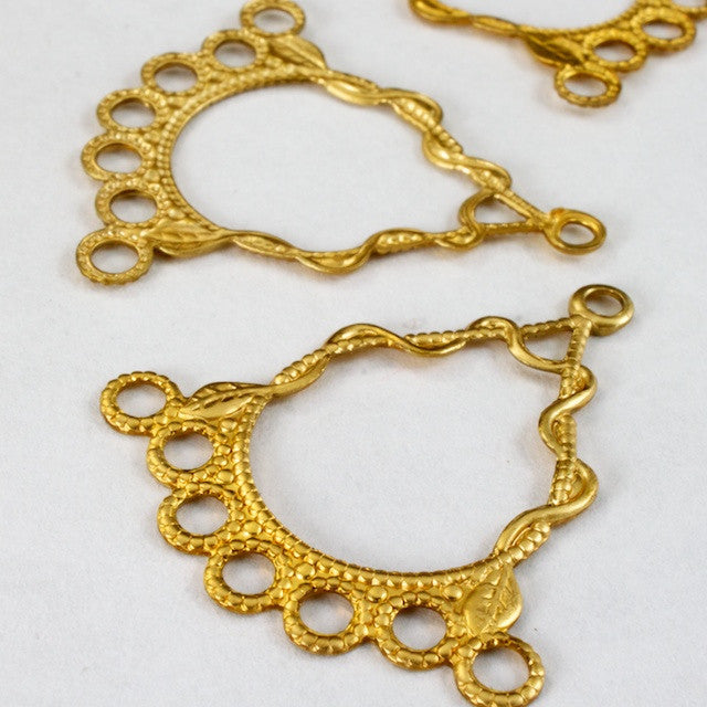 20mm x 25mm raw brass chandelier with 7 loops at bottom and 1 at top.