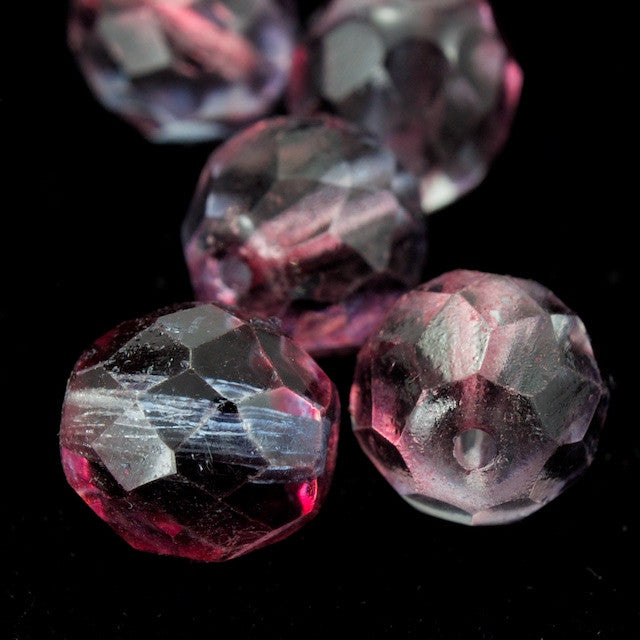 10mm pressed glass faceted round "Fire polished" bead.