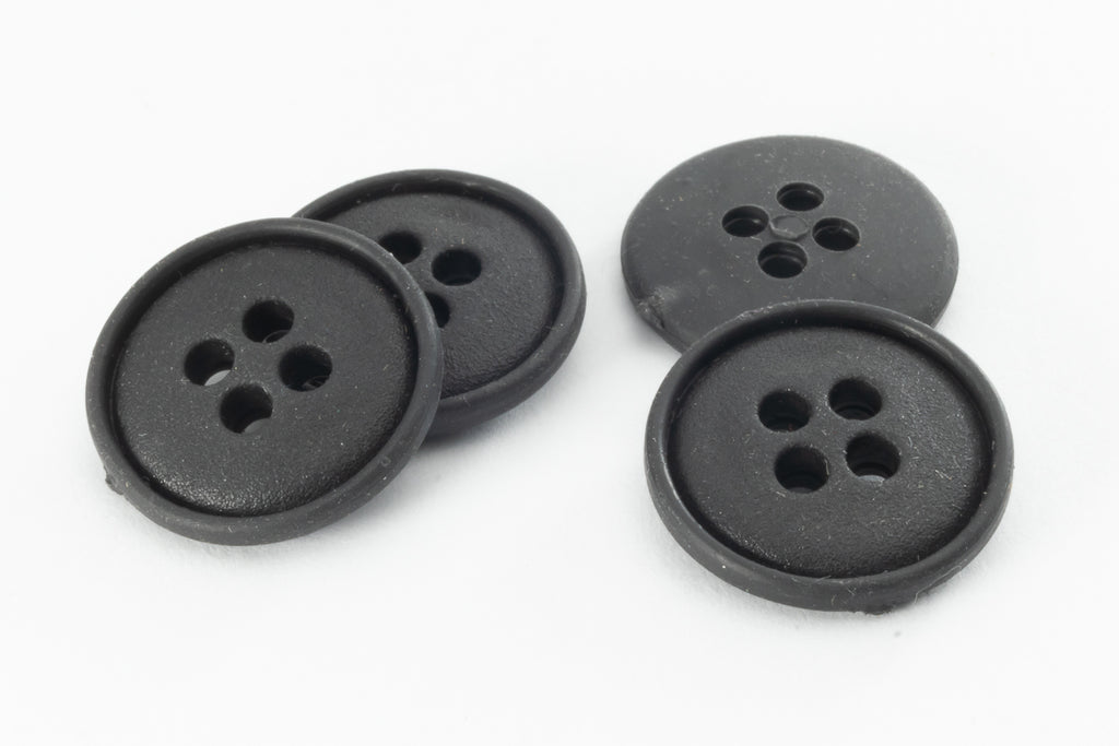 15mm Black Rubber 4 Hole Button (2 Pcs) #BTN013