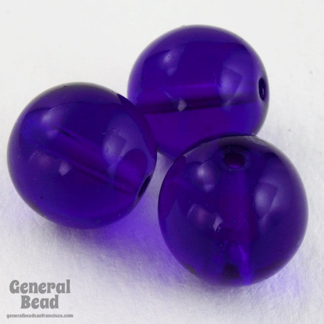 10mm pressed glass smooth round drum bead in transparent cobalt.