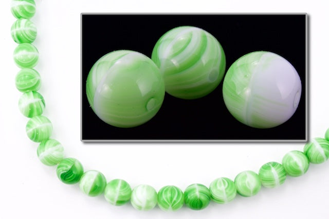 12mm pressed glass smooth round druk bead in opaque agate green.