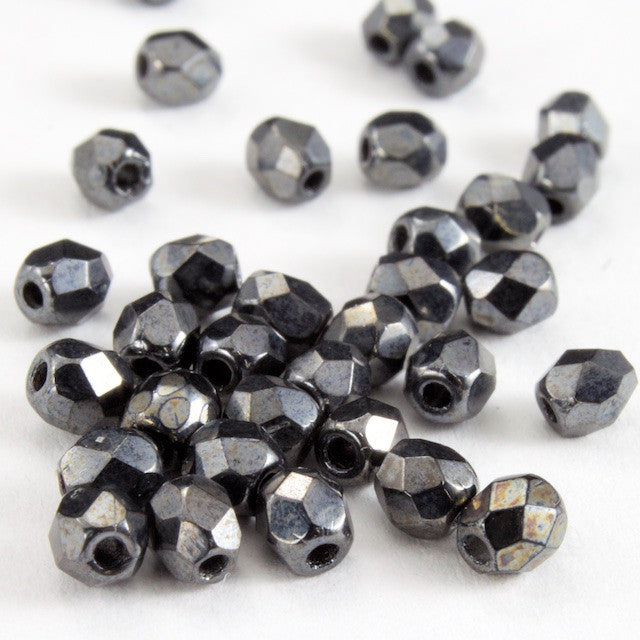 3mm pressed glass faceted round "Fire polished" bead.